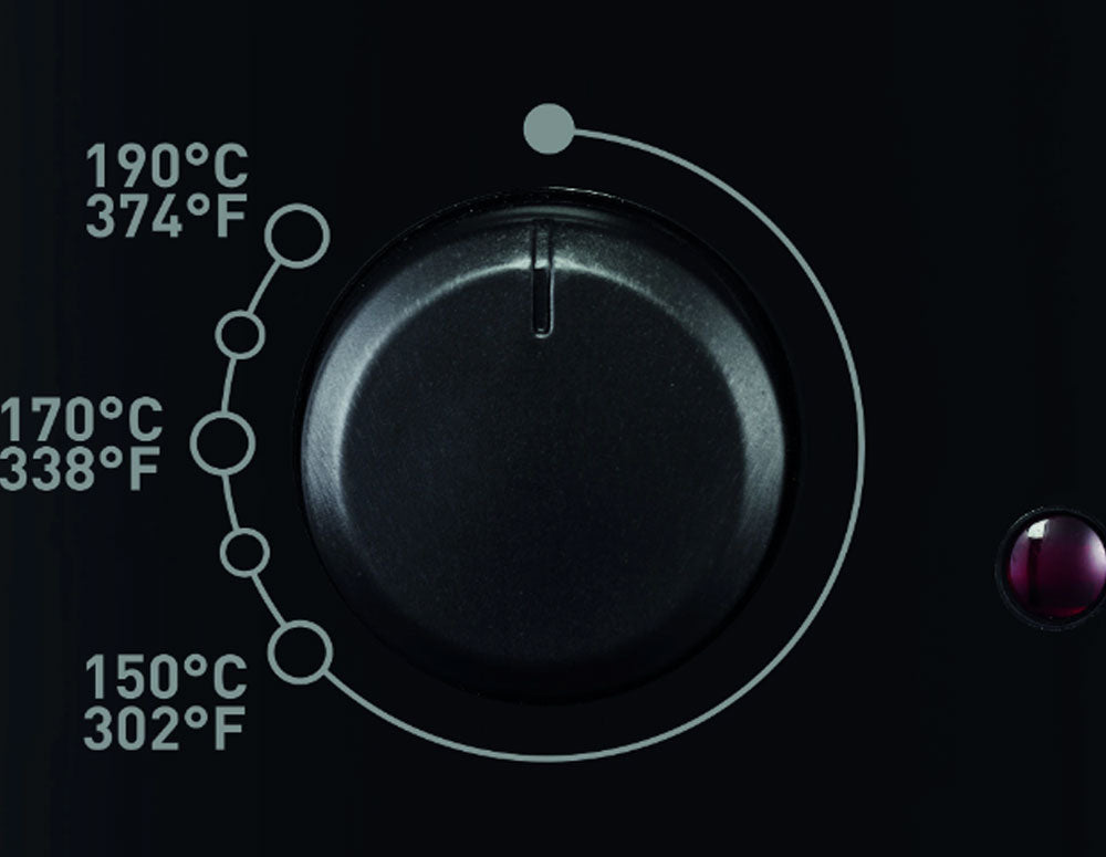 С Principio пестите място без компромис с готвенето! Лесен за използване, започвайки от лесния превключвател от задната страна на уреда, той пържи храна от 150°C до 190°C. Капакът е оборудван с постоянен метален филтър, може да се използва по време на готвене. |